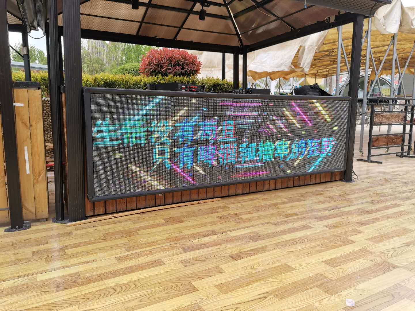 近日,鄭州大城小愛啤酒花園連鎖店,訂購我公司P6門頭全彩屏一批,安裝正在進(jìn)行。LED門頭屏是指安裝在店鋪外面門頭上的顯示屏,它主要是針對(duì)在路邊店鋪的門頭,大多被用在商店、商鋪以及步行街等地方。門頭屏主要以P10單紅色為主,通常高度為32點(diǎn),即32cm高,外形為長條形。P10單紅色的板,32x16點(diǎn),32cmx16cm,成本低。但近些年,越來越多的商戶選擇全彩門頭屏,外形一般為長方形、多采用P10全彩板,顯示效果好。不單一播放文字廣告,與全彩LED廣告屏類似可播放多種格式內(nèi)容,價(jià)格又比全彩LED廣告屏低很多。